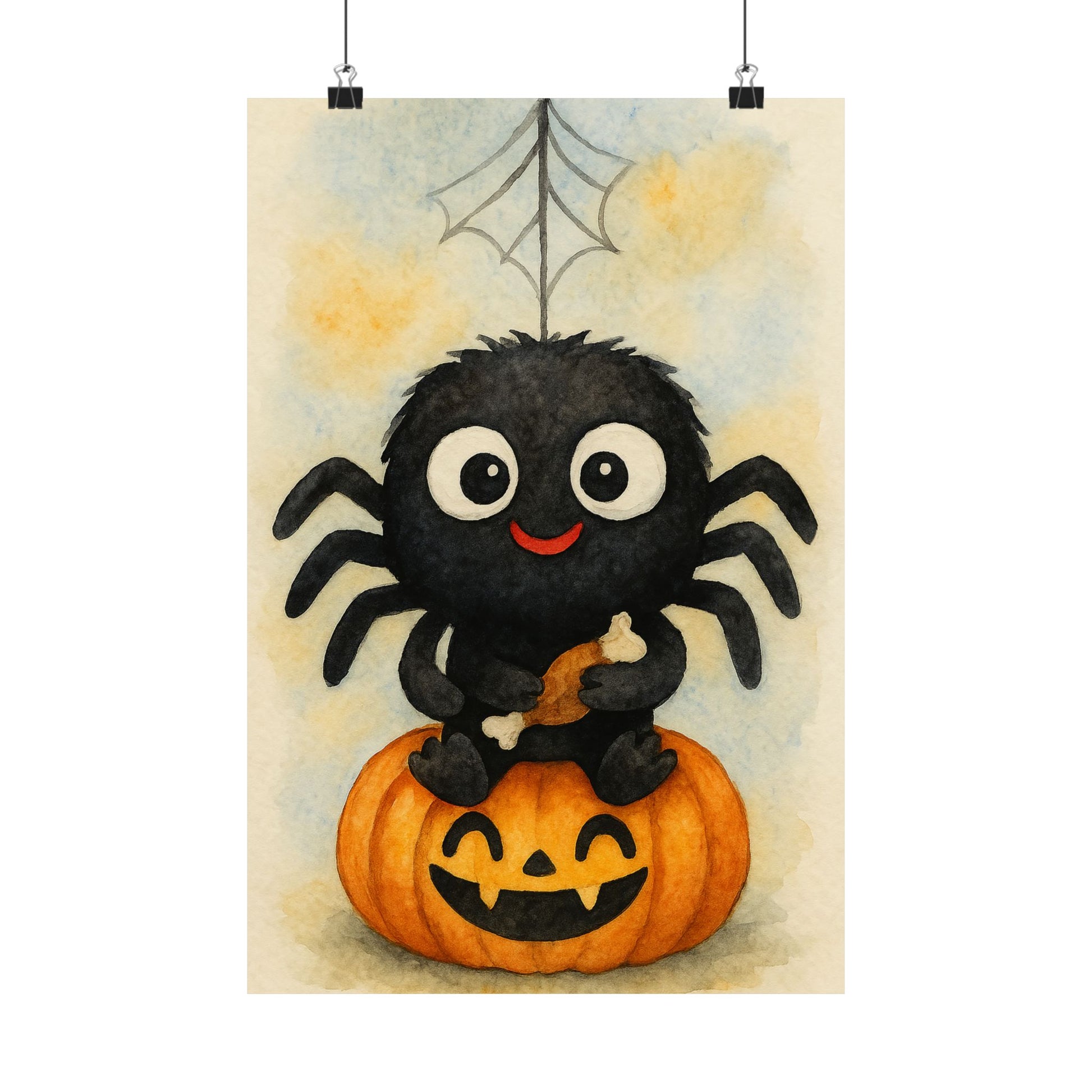 Bring a touch of spooky-sweet charm to your home with this adorable Baby Black Spider poster. Perfect for Halloween, kids’ rooms, nurseries, or anyone who loves whimsical monster art, this piece features a watercolor style illustration of a smiling baby Black Spider Monster sitting happily on a pumpkin.
