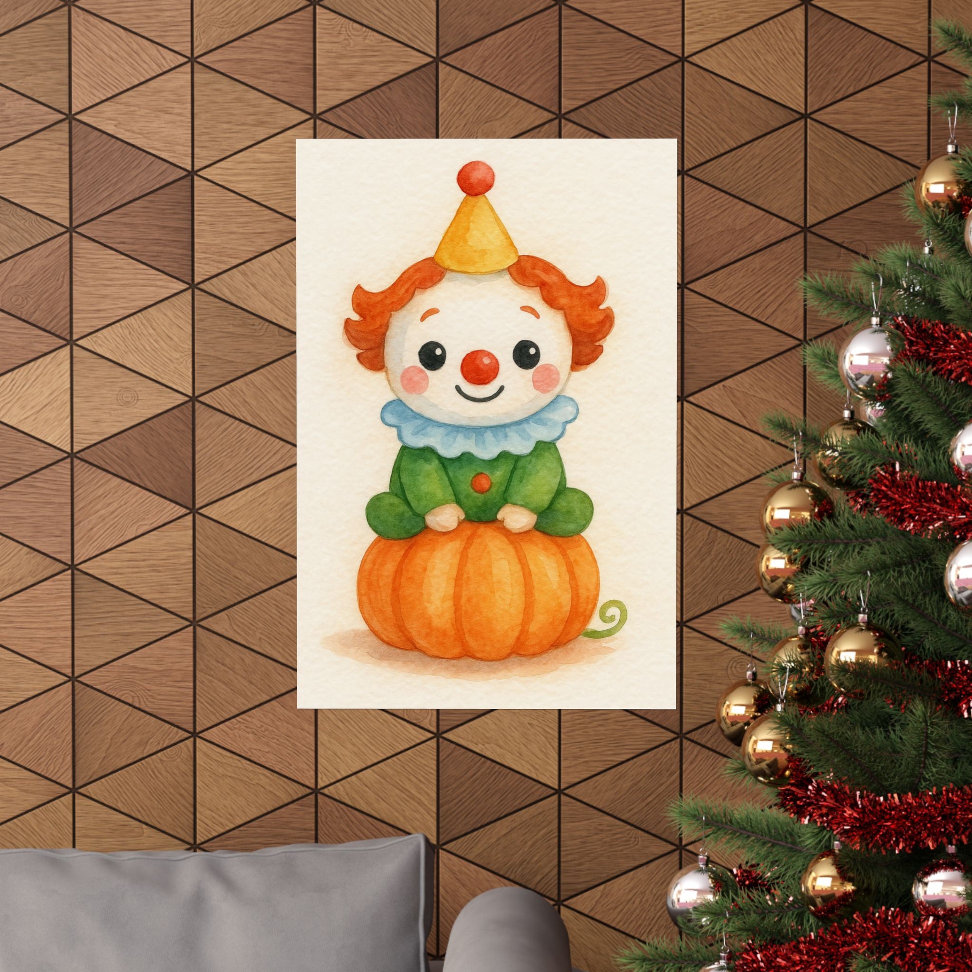 Bring a touch of spooky-sweet charm to your home with this adorable Baby Clown Monster poster. Perfect for Halloween, kids’ rooms, nurseries, or anyone who loves whimsical monster art, this piece features a watercolor style illustration of a smiling baby Clown sitting happily on a pumpkin.