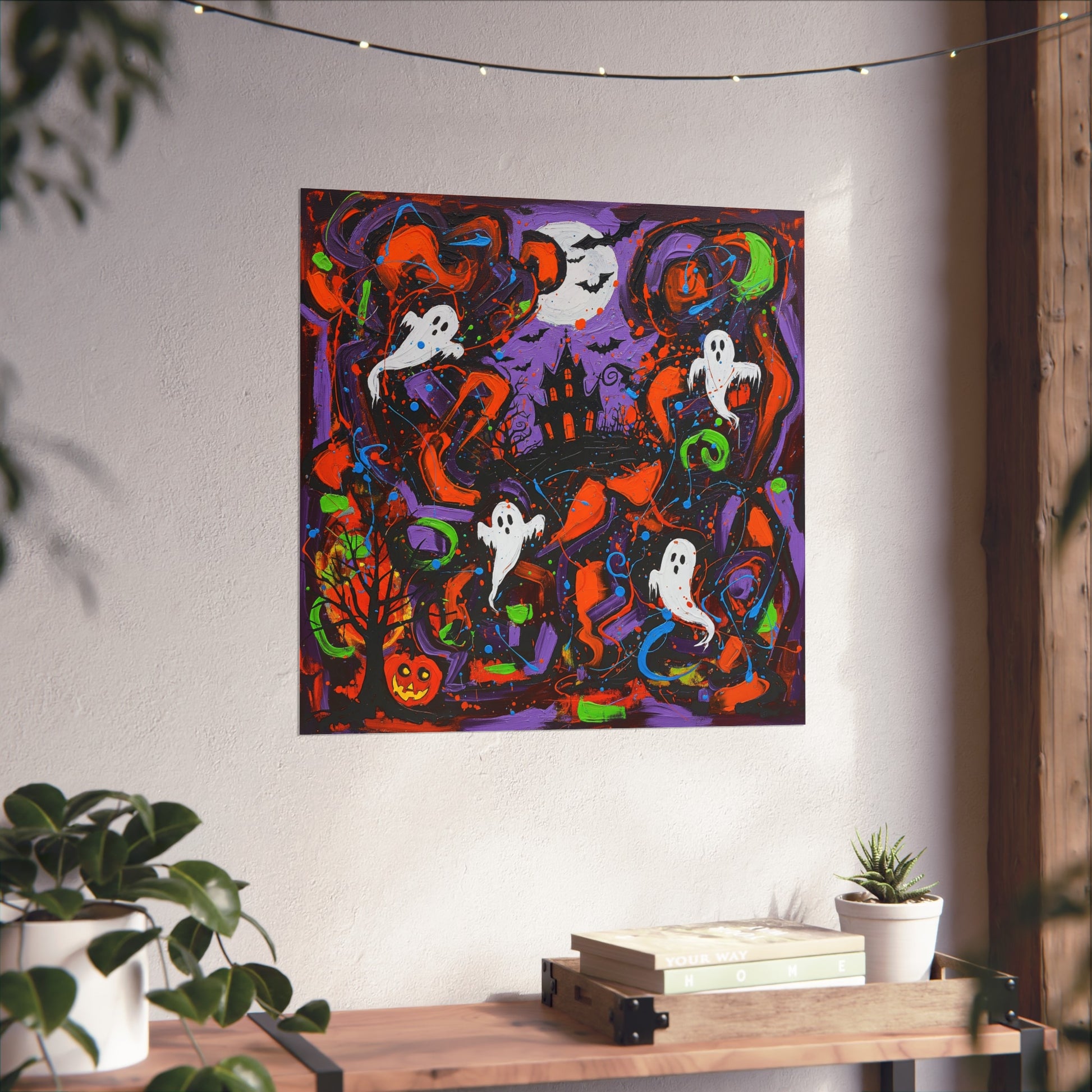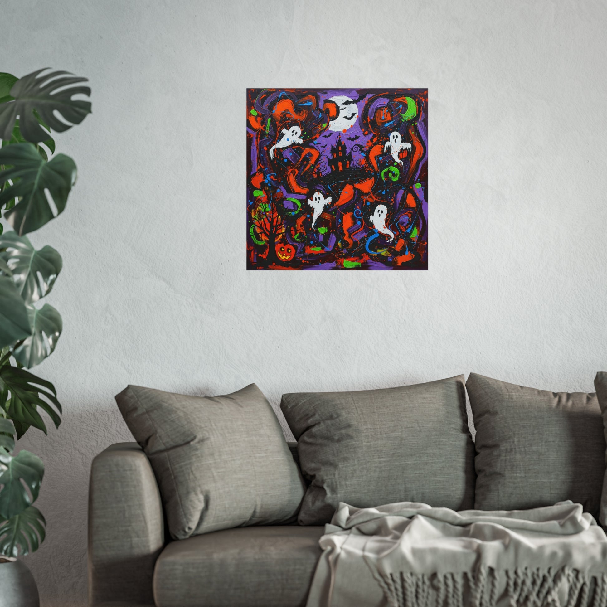 Halloween Ghost Abstract Expressionist Fine Art Print β Haunted House Wall Art Poster, Spooky Colorful Autumn Home Decor