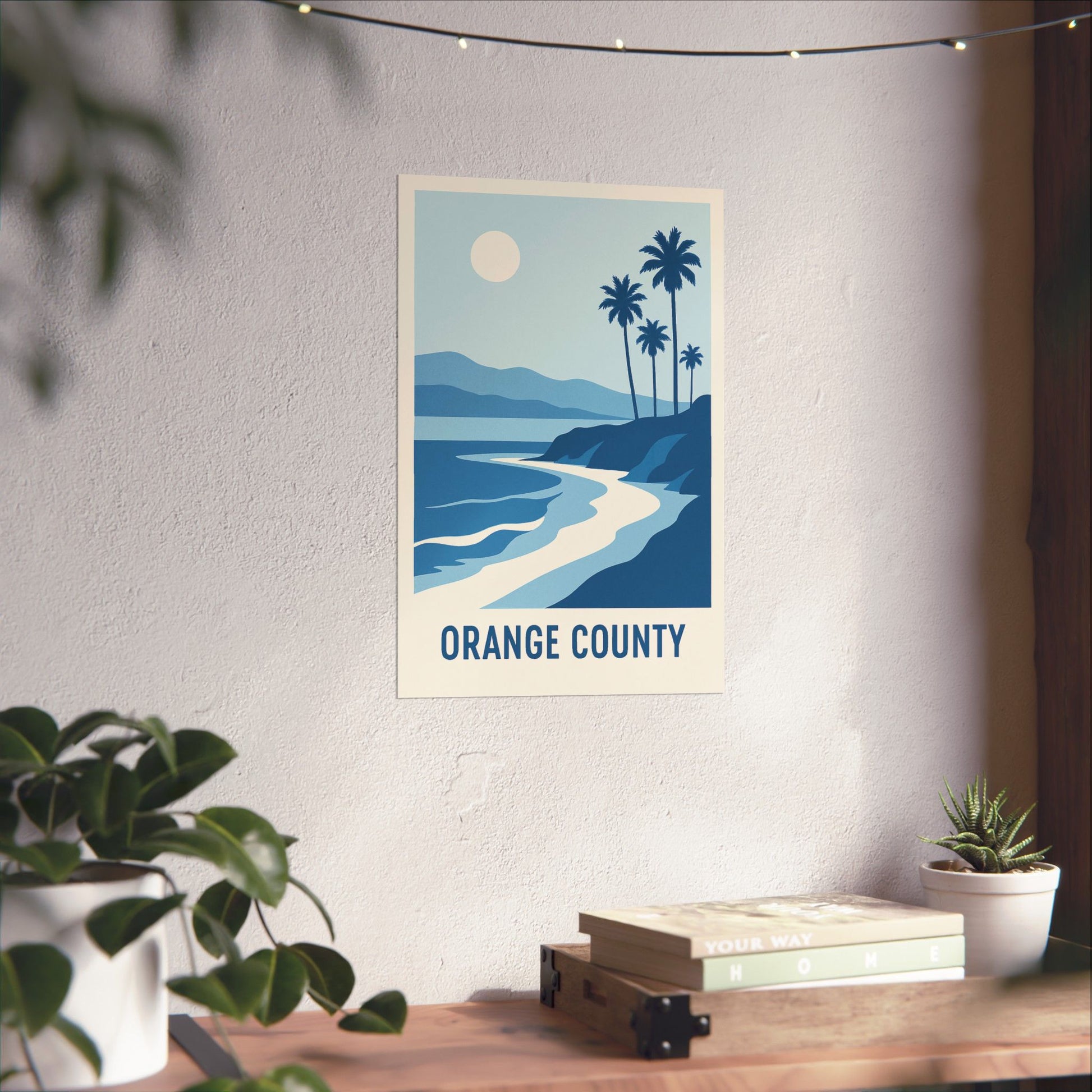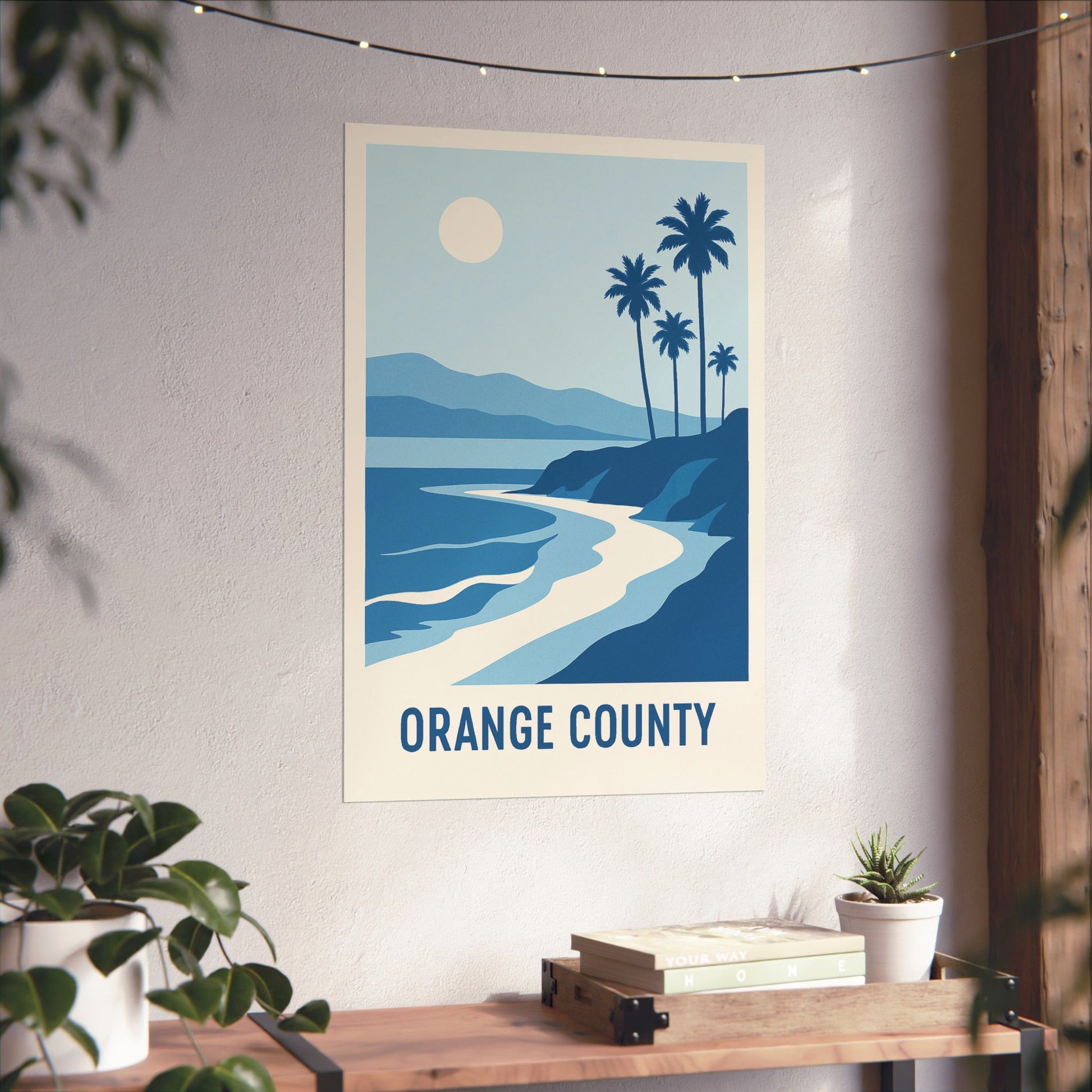 Orange County Poster – Retro California Travel Wall Art, Vintage Coastal Print with Palm Trees & Ocean View